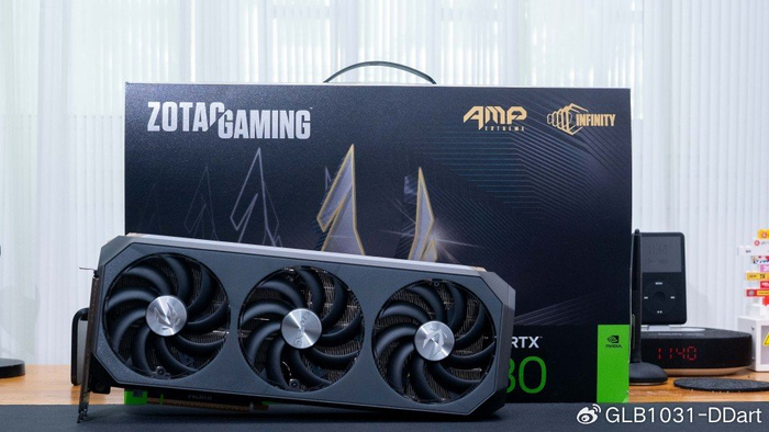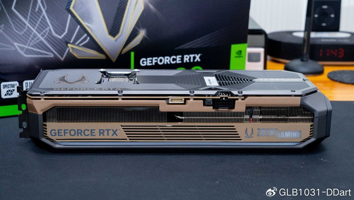 显卡侧面的PCB框架与散热骨架加入金属装饰,显卡尺寸为33.21cm x 6.96cm x 13.75cm,