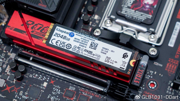 主控是来自慧荣SM2508的主控,这也是目前PCIe 5.0 固态硬盘的主流选择。2TB版本采用金士顿自家的NAND颗粒,2TB版本为两颗NAND颗粒设计,单颗容量1TB。SSD产品背面是容量信息以及各种认证信息。