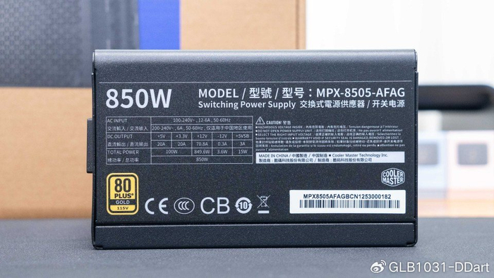电源是酷冷至尊GX PLUS金牌全模组电源,我选择的是850W版本。80PLUS与Cybenetics双金牌认证,符合最新的ATX 3.1和PCIe 5.1规范,同时提供了黑白两色可供选择。