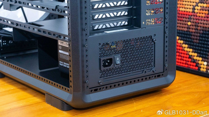 机箱背面一览,整体设计了很多自由可调的框架设计。可以根据具体配置调整框架结构位置以达到更佳的硬件兼容性。