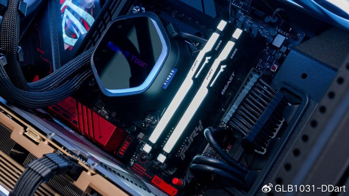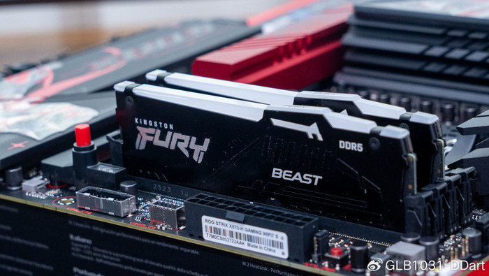 内存也是金士顿的Beast 超级野兽 RGB灯条,6000MHz CL36设计,容量为32GB(16GB x2)容量。外观还是金士顿的经典设计,配合黑色金属马甲的灯条。金属马甲上装饰了FURY与BEST装饰。