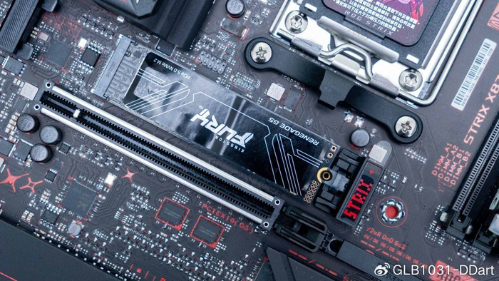安装效果如图,搭配主板自带的散热片日常运行温度表现要比早期的PCIe 5.0 SSD好很多。