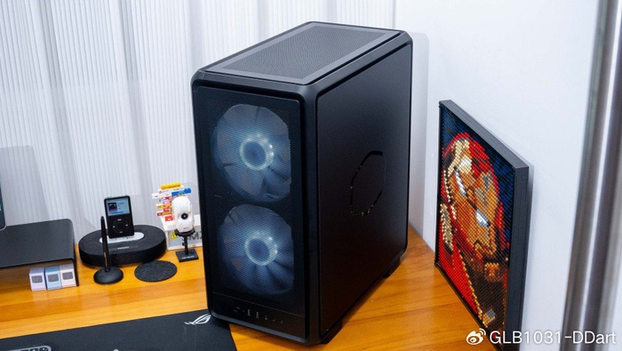 这次装机的机箱是酷冷至尊的MF500 MESH,可以把它看作是MF600 的短风道版本。机箱正面预装了2把20cm ARGB风扇,提供了银色和黑色两个版本可选。