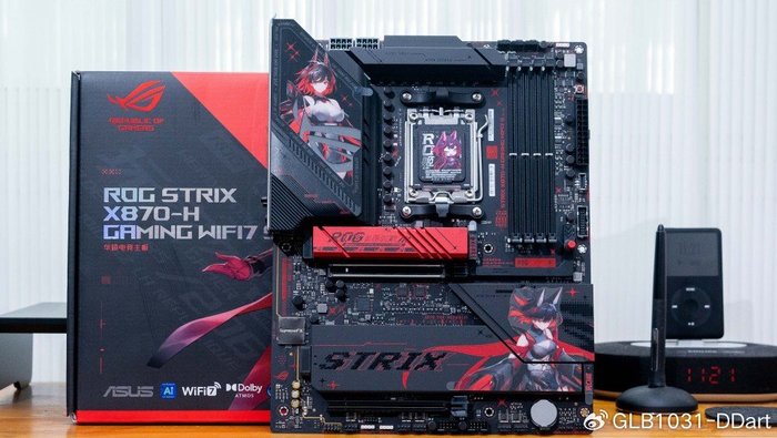ROG STRIX X870-H GAMING WiFi S RO姬主板也是即华硕吹雪系列大火之后首次带来的黑色版二次元风格主板产品,整体主板上充斥着更具标志性的二次元装饰设计。