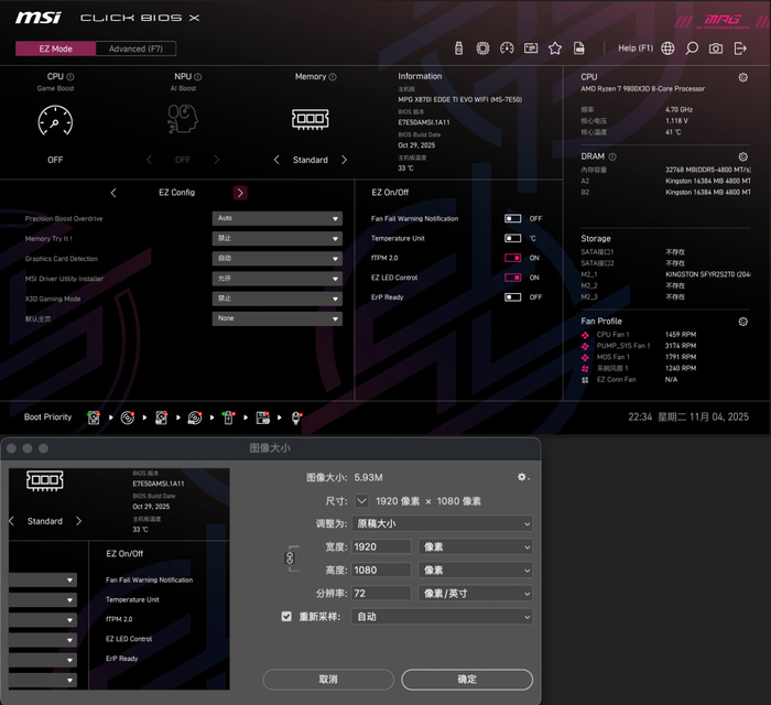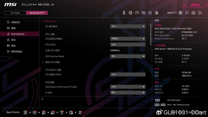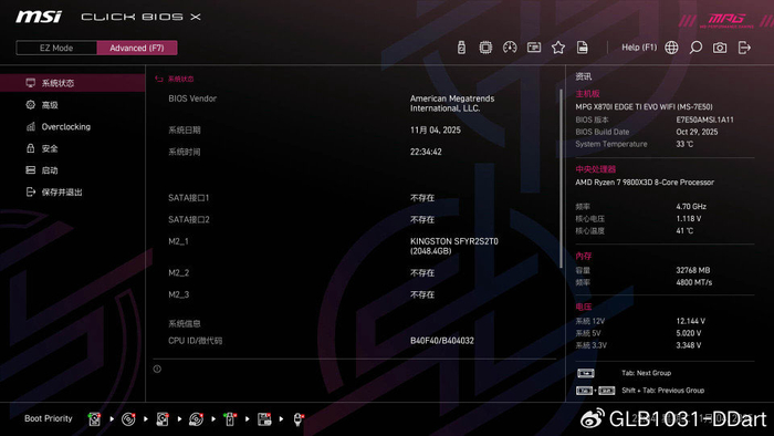 主 板:微星 MPG X870i EDGE TI EVO WIFI