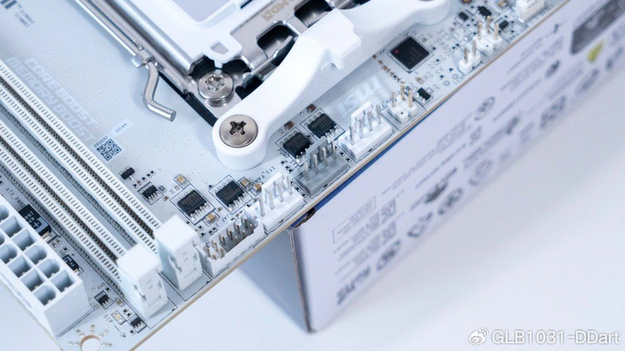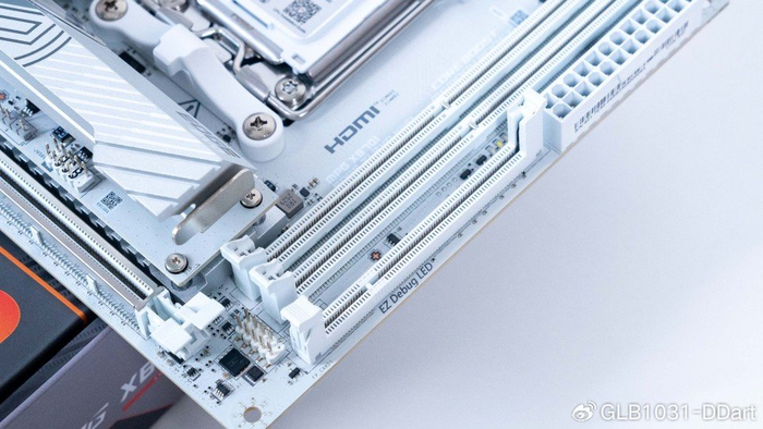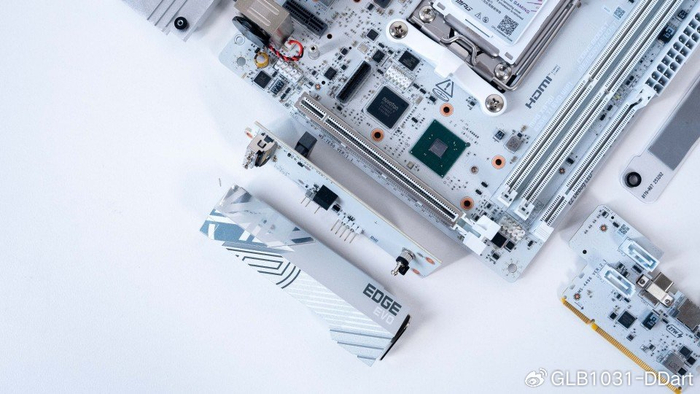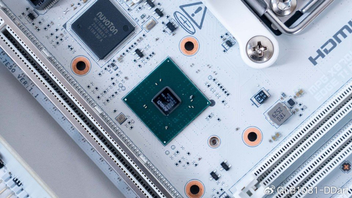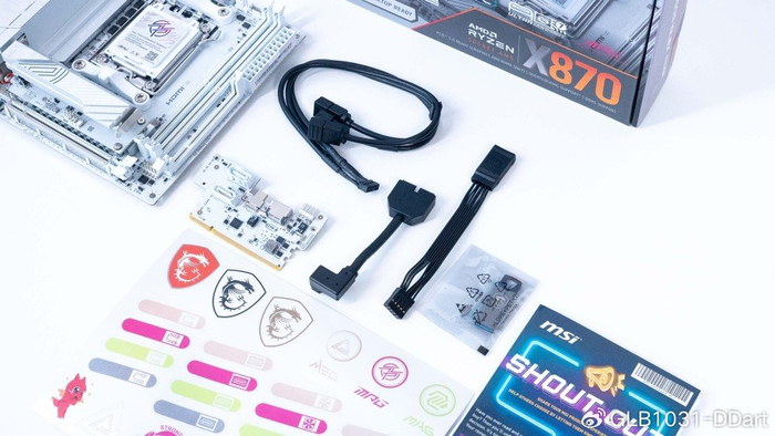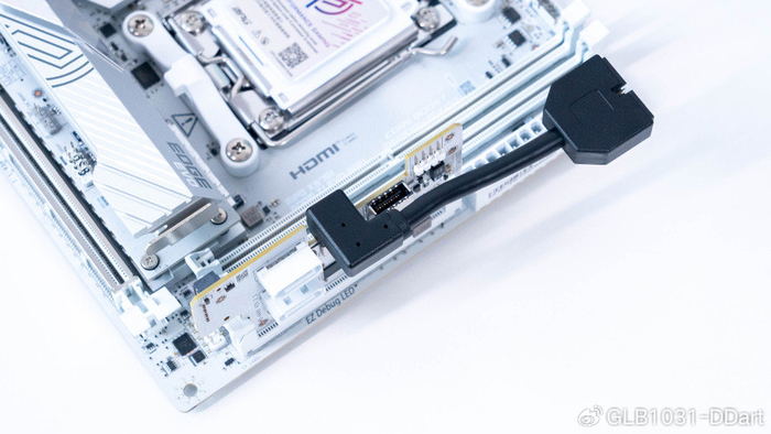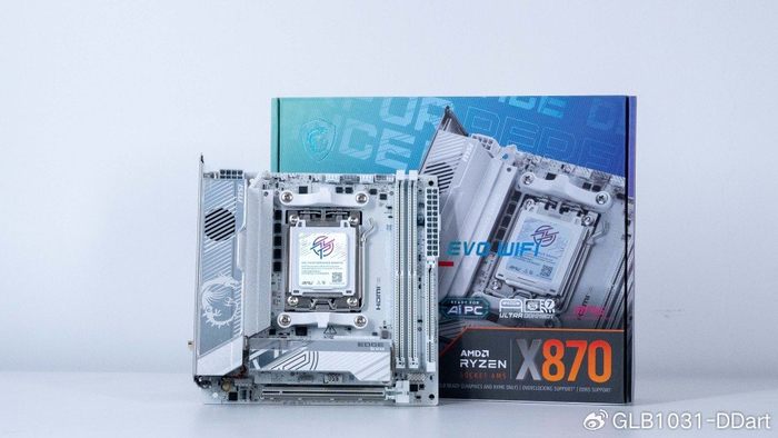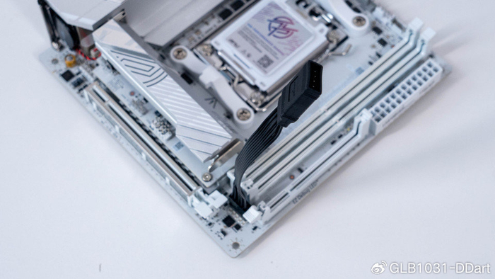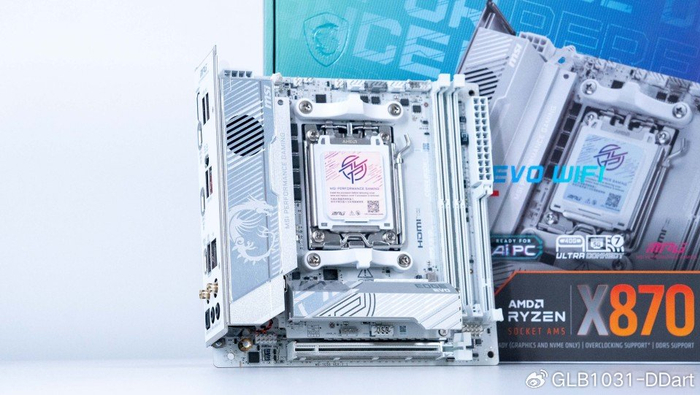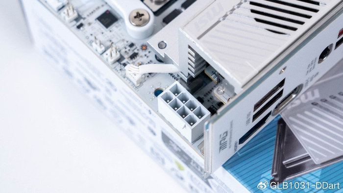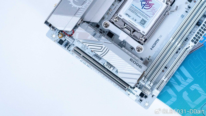 微星 MPG X870i EDGE TI EVO WIFI主板外观上相比之前的B850i EDGE TI白色部分更彻底了,像是内存插槽以及各种插针接口都替换成了白色。