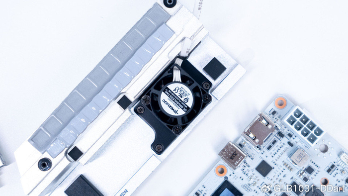 拆下扩展版可以看到下方竟然还设计了转为USB 4.0芯片提供辅助散热的铝制散热片。