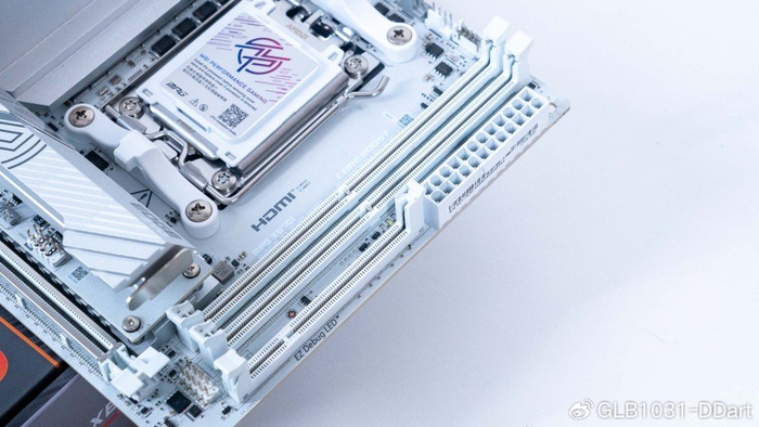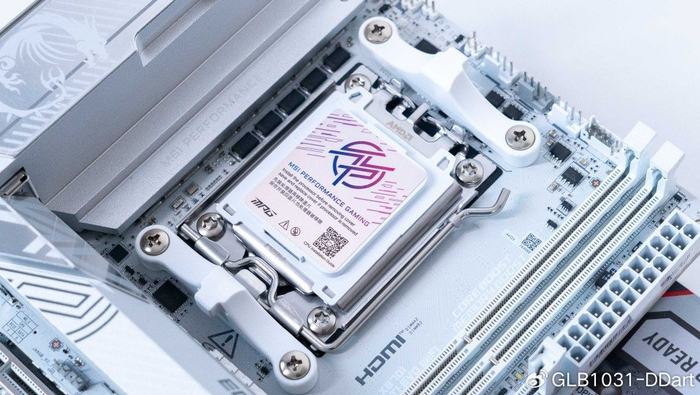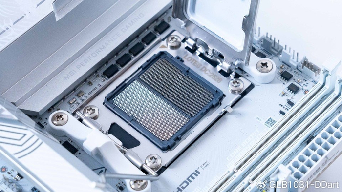 AMD Socket AM5 插槽的顶盖以及AMD 扣具都采用了纯白的设计,整体真得白的很彻底。