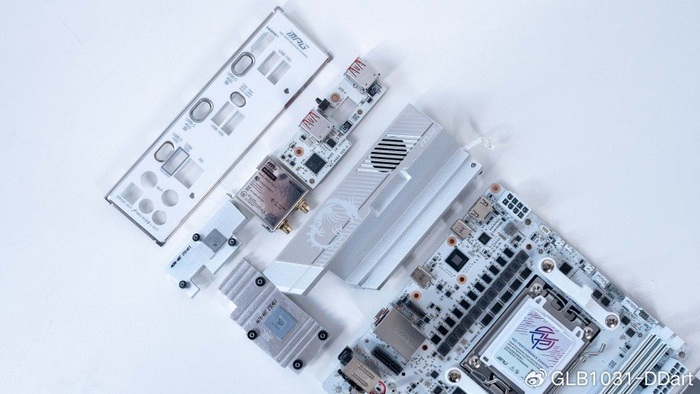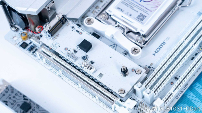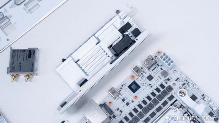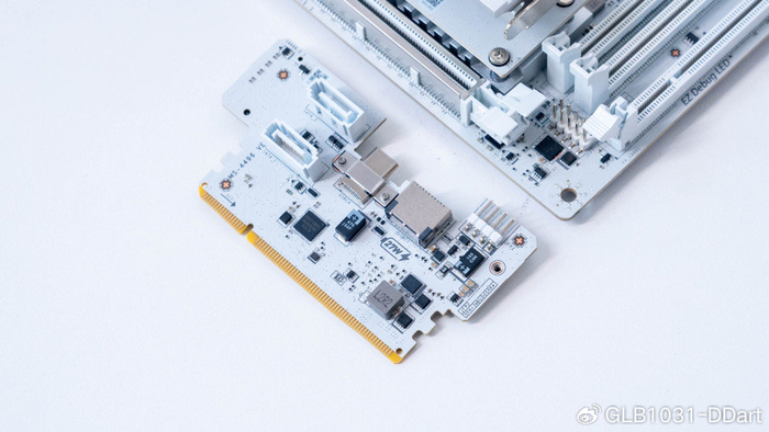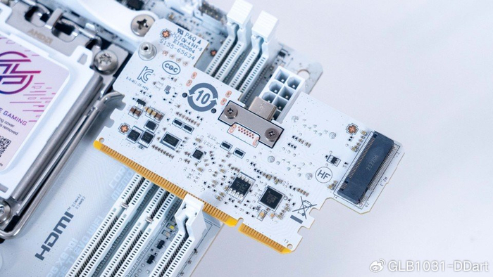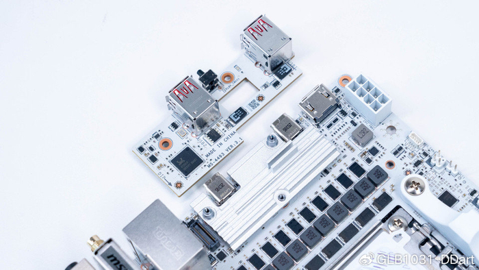 与MPG Z890I EDGE TI WIFI 刀锋钛主板不同的是,微星 MPG X870i EDGE TI EVO WIFI的这个五合一XPANDER 扩展卡的接口部分与主板保持一致都做了纯白的设计,细节上真的非常到位。