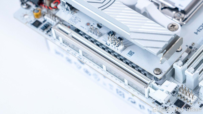 PCIe 扩展方面,提供了一个PCIe 5.0 x16的显卡插槽,插槽也做了金属加固设计。