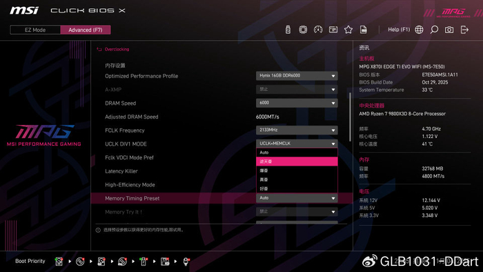 内存设置方面除了一键开启EXPO操作之外,微星的黑科技Memory Try It!功能大家一定不要忽略,而且在高级界面中还有像是延迟杀手「Latency Killer」、高效能「High-Efficiency Mode」等内存优化选项。真的都是黑科技。