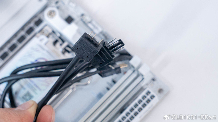 另外 MPG X870i EDGE TI EVO WIFI主板的开机、重启插针位置设计得也非常紧凑,在显卡插槽和内存插槽中间,在这样狭小的位置中装机是有一定困难的。不过微星也考虑到了这一点,为玩家提供了EZ FRONT PANEL 前面板延长线。通过延长线就可以很方便地实现开机线的使用。