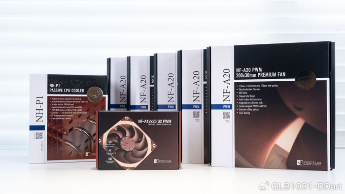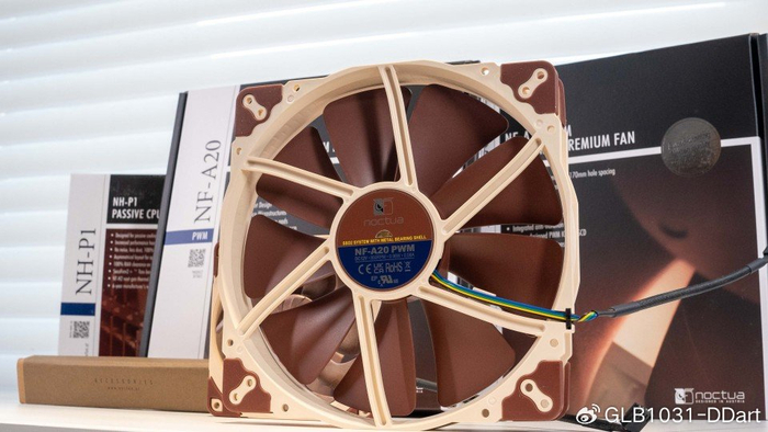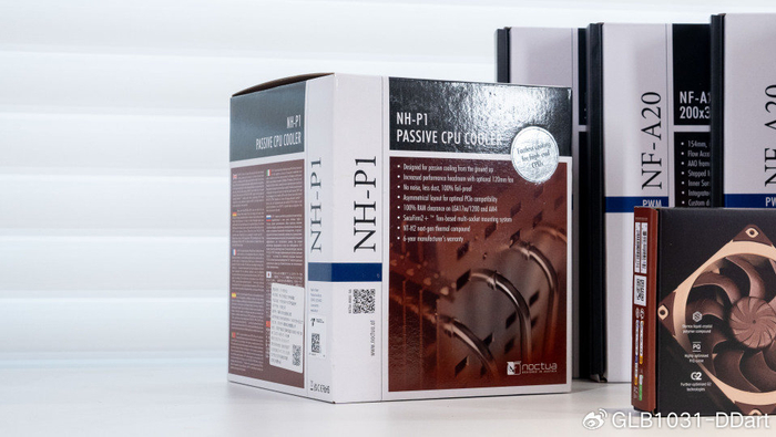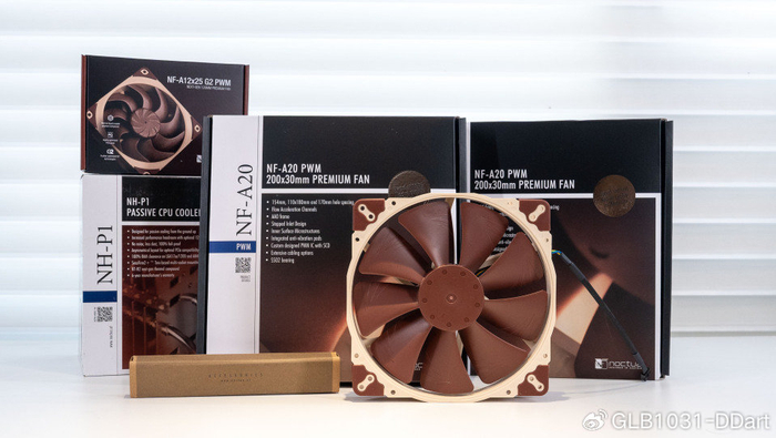 风扇方面因为要选20cm的风扇,所以首先想到了猫头鹰之前推出的NF-A20了。这也是少有的几个直接有20cm的风扇选择了,另外这次还尝试了NF-A20x25 G2 PWM这款12cm旗舰一起。合照下是不是很有压迫感,这次装机也让我终于有机会装这款入手很久的NH-P1被动式散热了。