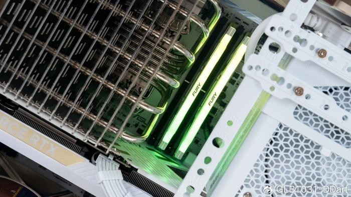 内存顶部区域内嵌了12颗独立LED灯珠设计,支持18种预设灯光效果。日常可以与主流板厂实现一键灯光同步,也可以通过FURY CTRL软件进行灯光控制。