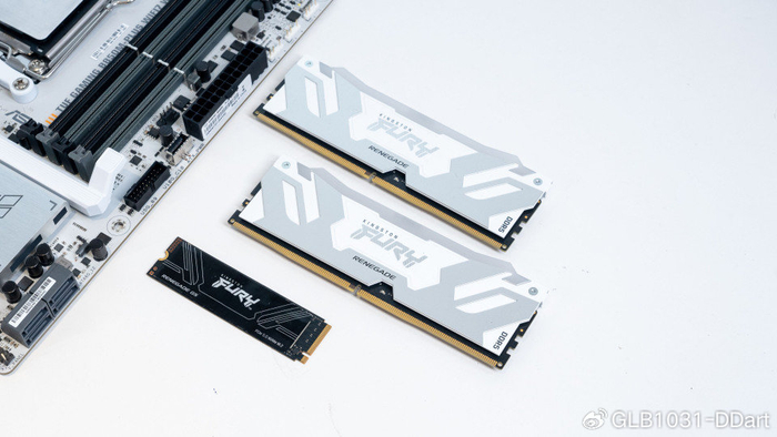 内存考虑配色选择了白色的金士顿叛逆者系列8000MHz 16GBx2的RGB灯条版本,8000MHz CL38时序设计,支持一键开启XMP 3.0技术。当下双11内存价格真的涨了不少,内存选择上建议大品牌,内存容量像是16GB x2这样的似乎会更合适当下的选择。