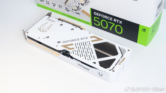 显卡方面我搭配了白色系的索泰 GEFORCE RTX 5070 SOLID CORE WHITE 显卡,在当下RTX 50系依旧是最值得玩家关注的选择,而且目前也可以关注到相比内存和SSD价格的上涨,RTX 50系显卡的价格相比首发的时候可以说是有了更好的性价比。