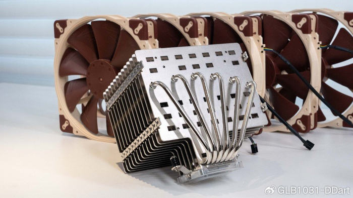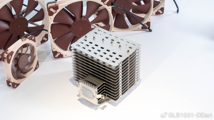 6热管弧形水平排列,上下都有大量扰流孔,整个底座也有散热片,辅助均热以及支撑。