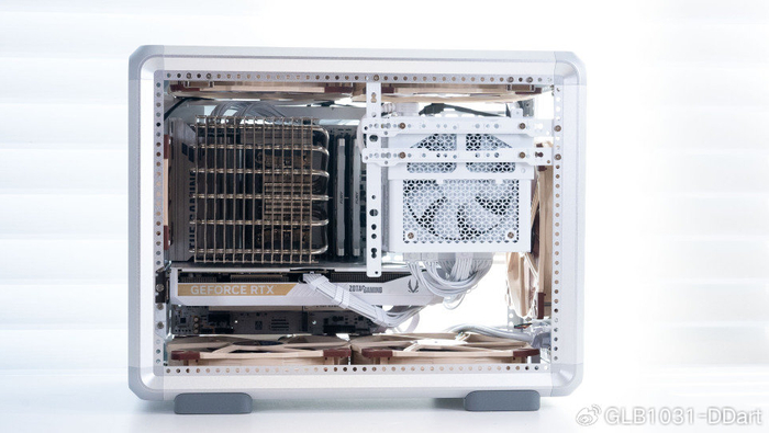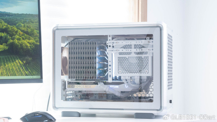 内部结构空间也具有良好的灵活性,显卡支持390mm高规格,水冷顶部和前排均可安装360水冷,风冷最高可选190mm以内的版本安装,理论上风冷上没有任何兼容性问题。