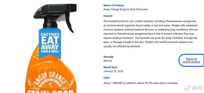 根据公开信息,隶属于亚马逊品牌聚合商Thrasio的清洁品牌Angry Orange,近期因存在细菌污染风险,对其酶去污剂产品发起召回。从召回范围看,这次事件覆盖面较广。