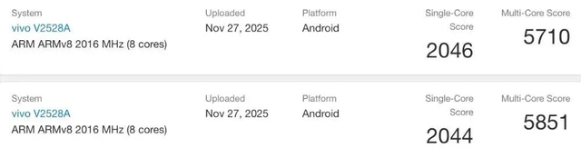 标准版的信息也逐渐浮出水面:型号V2528A的新机现身Geekbench,搭载高通第三代骁龙8s芯片,16GB内存,单核成绩约2045分,多核约5780分,运行OriginOS 6系统;屏幕为6.59英寸1.5K中直屏,支持90W快充(通过3C认证),还配备潜望长焦镜头(旗舰级中底CIS)。从配置来看,标准版主打“均衡性能+实用影像”,瞄准大众用户市场。