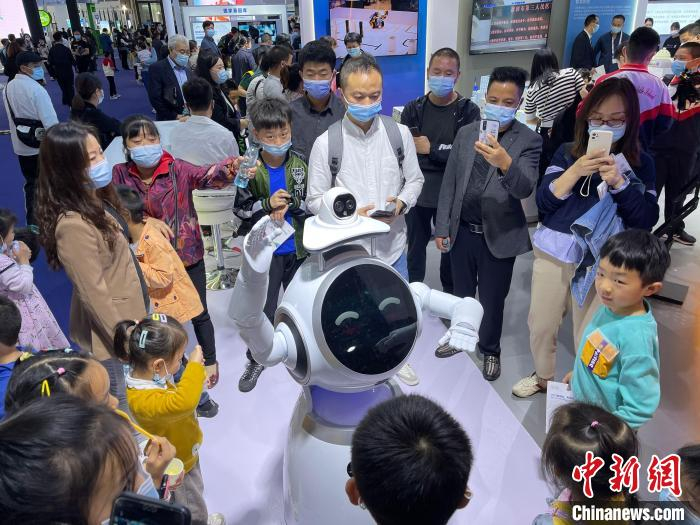 中新网贵阳5月28日电 题:数博会上民众争相打卡“黑科技”体验智能幸福生活