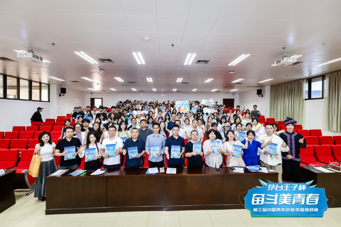 4月22日,由茅台王子酒与创意星球联合打造的"茅台王子杯·奋斗美青春"第三届中国青年创意传播挑战赛全国高校巡讲在广西大学创意开启。活动现场座无虚席,来自广西大学、南宁理工学院、广西艺术学院、广西农业职业技术大学等高校的近300名师生热情参与。