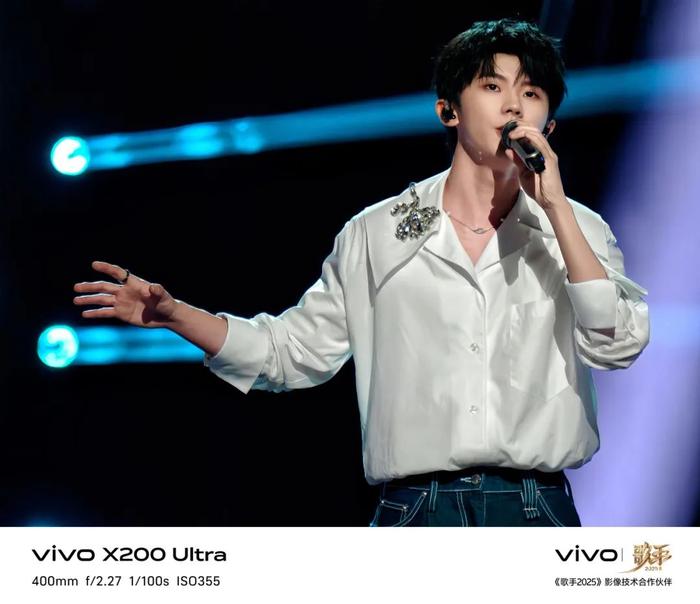 在《歌手2025》的复杂场景中,舞台灯光高频变化还原、歌手动态表演快速捕捉、观众席远距离特写等需求,成为了检验影像设备的严苛挑战,而此次vivo X200 Ultra通过全面革新为行业破解了一大难题——其搭载的14mm蔡司超广角镜头、35mm蔡司人文纪实镜头、85mm蔡司 APO超级长焦镜头II这三大定焦大师镜头,以全焦段全主摄的优势将舞台细节延伸至每一个观众视野,让即便在“山顶座位”的观众,也能收获如同身处VIP席位般身临其境的视觉体验,因此vivo X200 Ultra也被观众亲切的称之为 “演唱会神器”,同时在节目中更是依托该设备的技术优势创新性引入手机进行超长直播,为观众带来了全新的视听体验,并实现了从硬件技术突破到场景叙事升级的价值闭环。