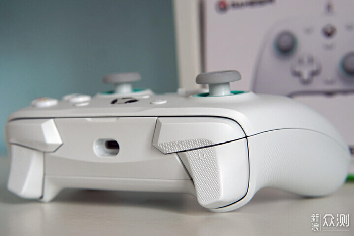 G7SE游戏手柄的底部搭载两个支持自定义背键,可以在APP中设置,满足玩家的自身喜好和游戏习惯。还配有全新的双背键锁定开关,每颗背键都有一个独立的背锁键,游戏玩家可根据游戏的类型,按照自己的实际需要来选择背键是否开启,这样以来,就能有效避免误操作,虽然是微小的改动,但却在实际游戏中,提供了不小的助力!