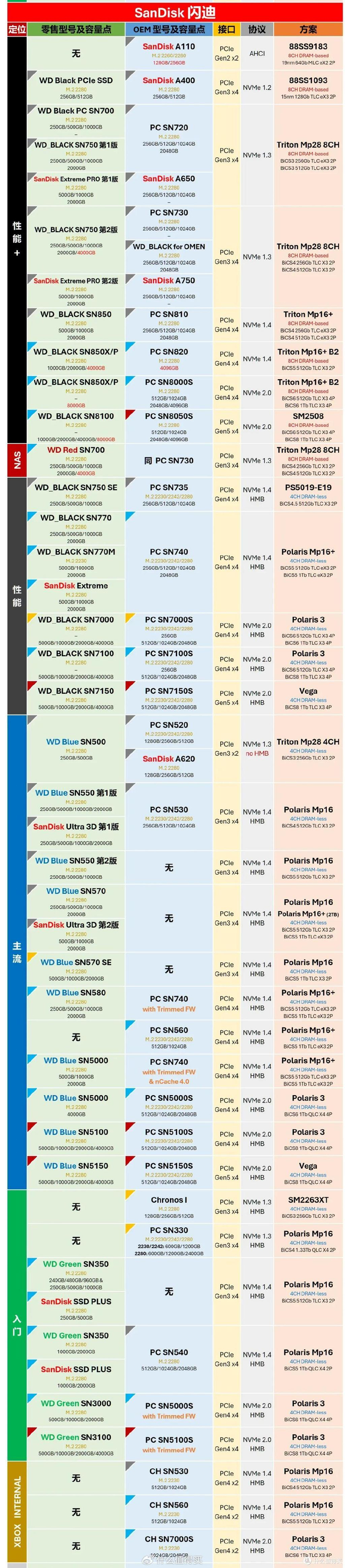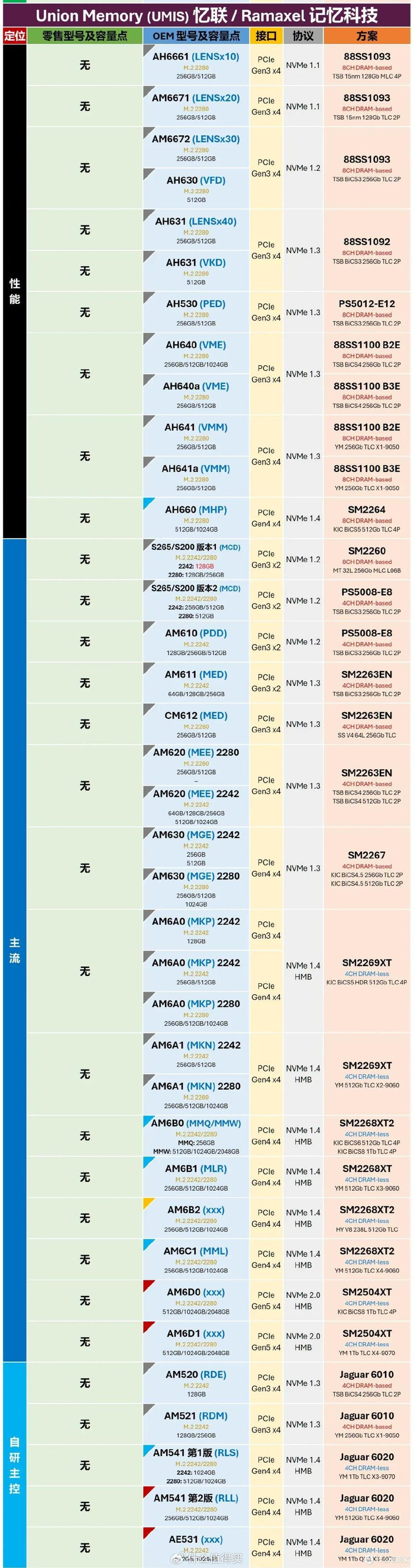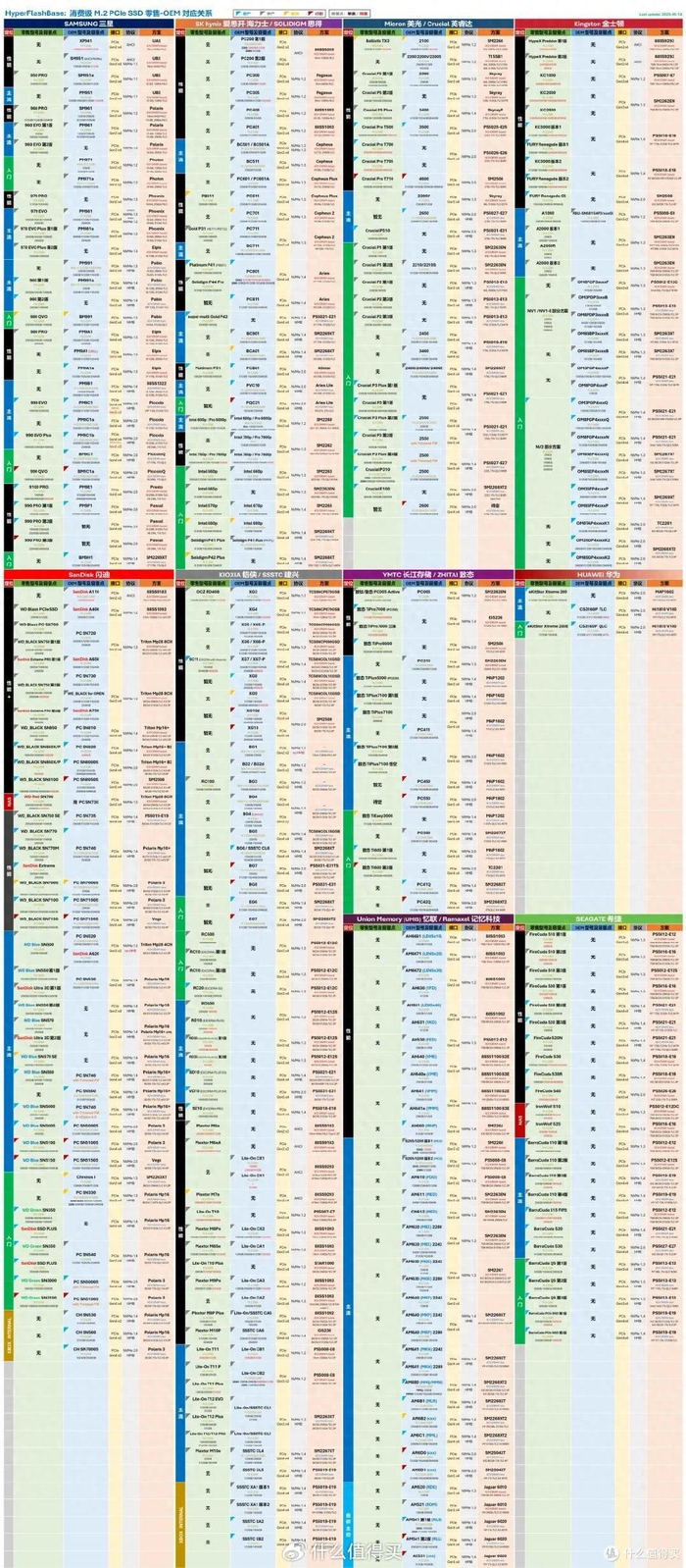 SSD仙人VictorTDD大神在5月份再次更新了《HyperFlashBase: 消费级 M.2 PCle SSD 零售-OEM 对应关系》数据表。