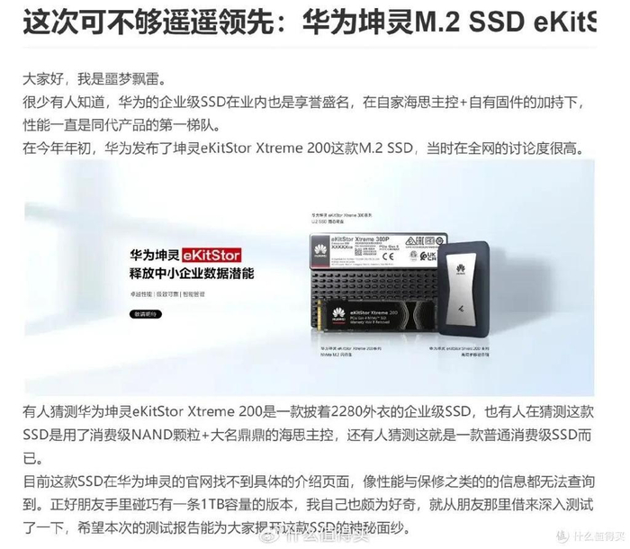 华为的SSD此前在B端叱咤风云,不过在将企业级存储业务出售给忆联后,又推出了Xtreme 200和Xtreme 200E这两块M.2产品。