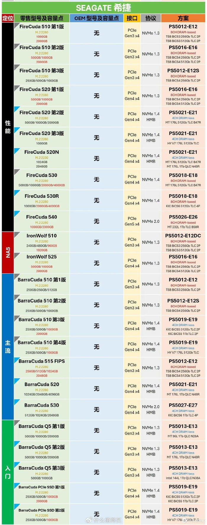 要不为啥SSD爱好者都说VictorTDD仙人功德无量呢。。。要不是有表格统计,我自己都不知道希捷的盘也有这许多不同的硬件方案。