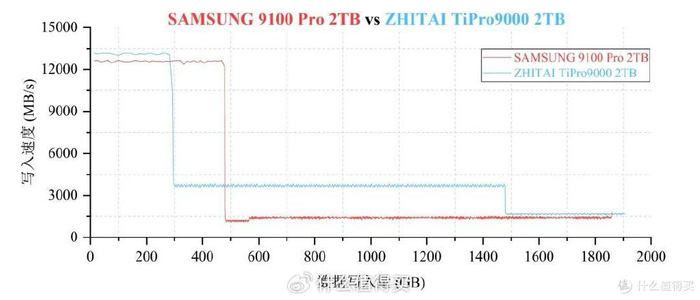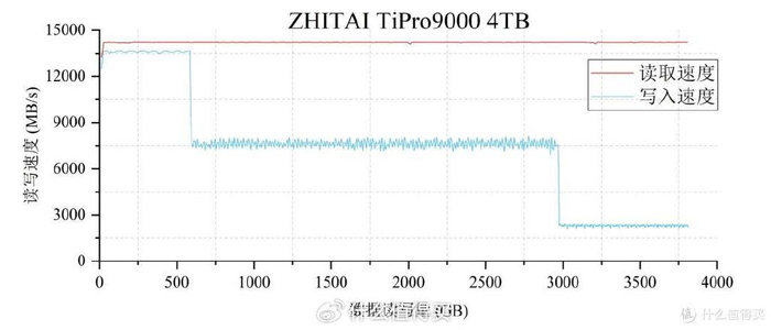 举例来说,4TB版的TiPro9000,只凭NAND颗粒本身的素质,就可以实现SLC缓外接近8000 MB/s的直写速度,而这已经超过很多PCIe 4.0固态硬盘的缓内写入速度。