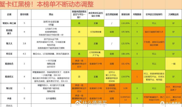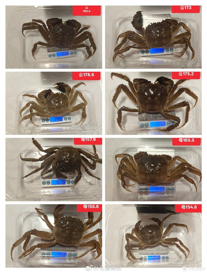 这家品牌去年也买了,去年和今年居然一模一样,都是大闸蟹重量是合格的,甚至重量很高,平均达到了114.97%的超高重量。