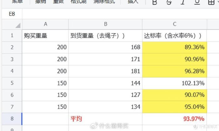 哪怕是总重也是刚刚合格,非常不好。最低的只有93.6%。