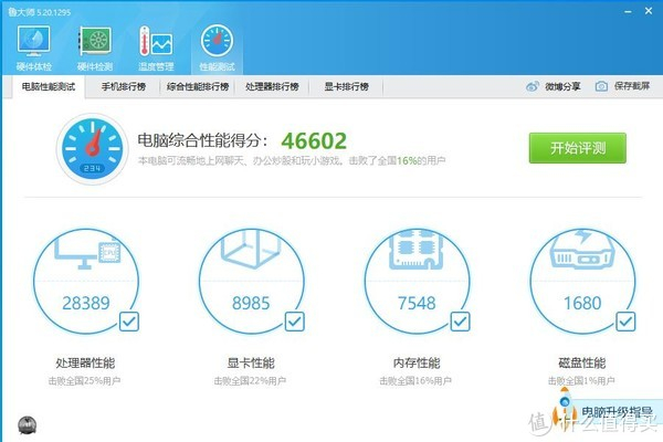 看了下得分只有,感觉得分怎么这么低,短板是磁盘,如果换成固态会提高