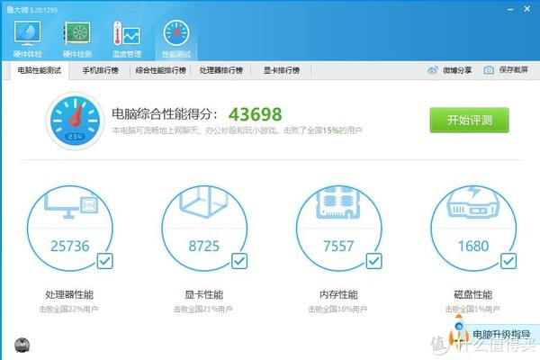 3、得益于6代的CPU,系统跑分还不错