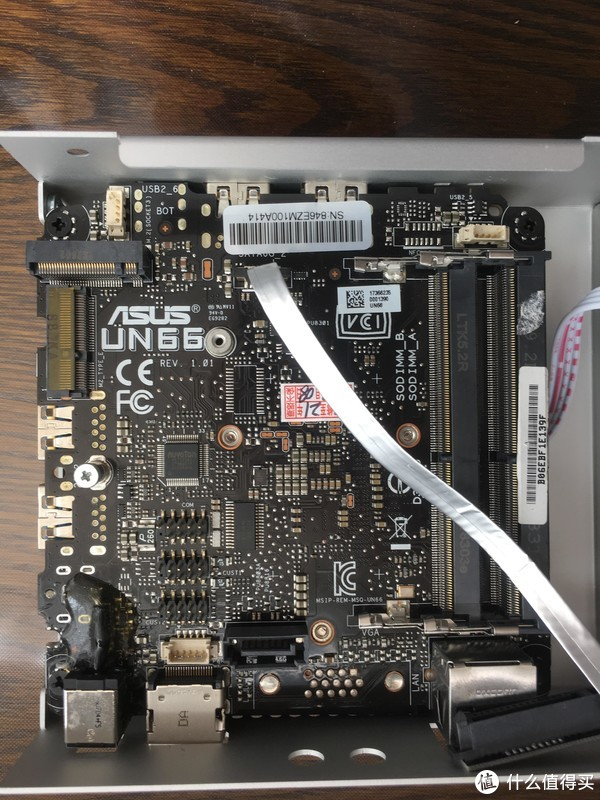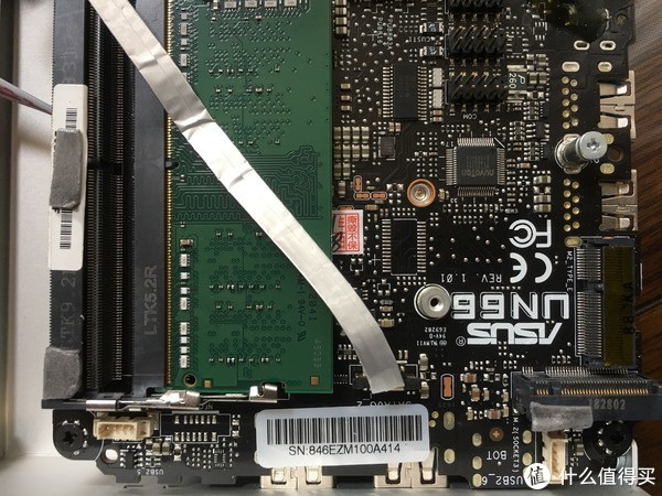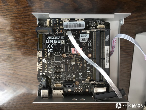 可以看到主板左上角ASUS UN66的字样,此外主板上除了接口和一根硬盘的软排线以外,没有其他更多的东西,因为这是准系统,内存和硬盘是要自己准备的。