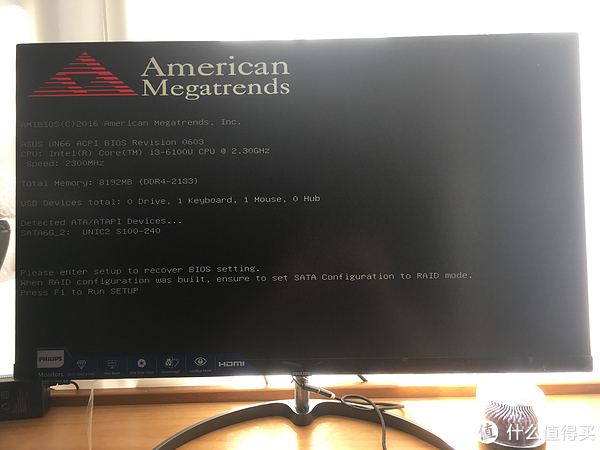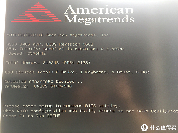 按了开关键,感觉没什么反应,难道坏了?过了一会才出现ASUS的标识,感觉自检的过程需要一点时间,出来以后就报错
