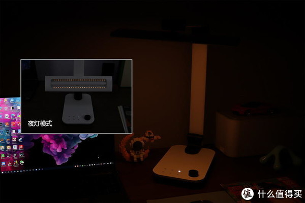 小夜灯模式与普通照明模式是独立的,点按对应触控键就能开启小夜灯模式,再按关闭。开启后,灯珠为暖色最暗的状态,这个照明亮度如淡淡月光,不会影响睡眠,起夜在桌上找个东西很方便。