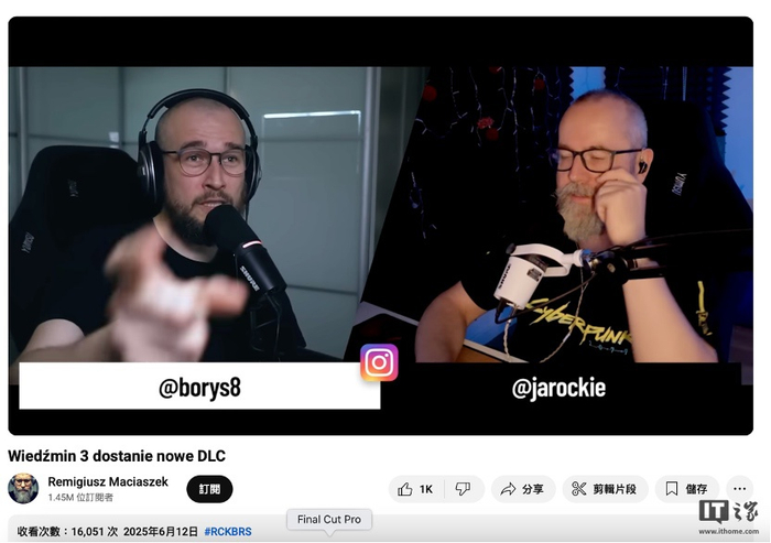 该博主在视频中与另一位博主 Borys Niespielak 一起,介绍了《巫师 3:狂猎》,随后该博主称,该游戏的第三部 DLC 目前已经进入到了开发阶段,由开发商 The Fool's Theory 操刀(目前正负责开发《巫师》重制版),预计将于 2026 年正式推出。