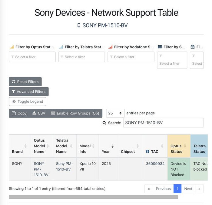 近期,澳大利亚网站「Is This Phone Blocked?」披露了 Xperia 10 VII 的详细信息。其中,OEM ID「PM-1510-BV」明确标注为 Xperia 10 VII 的型号,而「PM-1513-BV」则对应日本国内 SIM フリー版的型号「XQ-FE44」。