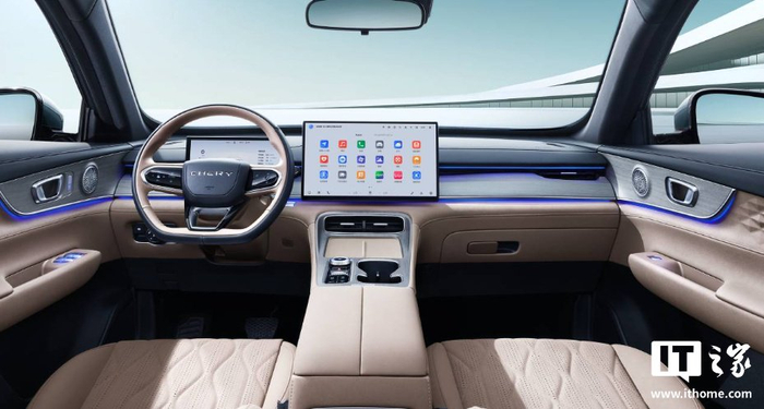 内饰同样沿用 2025 款瑞虎 8 PLUS 设计风格,配备 10.25 英寸组合仪表、悬浮式 15.6 英寸 2.5K 中控屏、方向盘四向可调、电子换挡(怀挡)、540° 全景超清倒车影像等。新车车机支持云端生活娱乐互联系统、智能手机映射等。