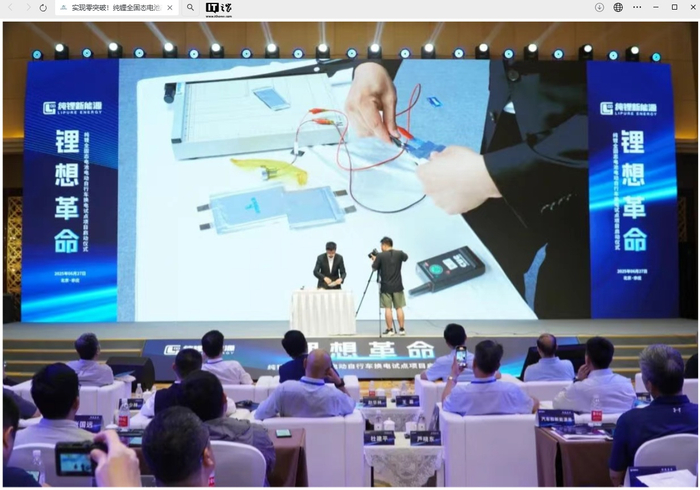 杨帆表示,当前还在推进面向汽车领域的全固态动力电池研发,预计在 2026 年进入小试阶段,2027 年进行上车验证。