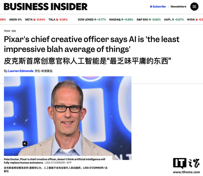 IT之家 7 月 6 日消息,据《商业内幕》今日报道,皮克斯首席创意官彼特・道克特日前在喜剧演员迈克・柏比格利亚主持的播客《Working It Out》中直言,AI 目前还无法让自己感到惊艳,他甚至觉得这种技术“很无聊”。