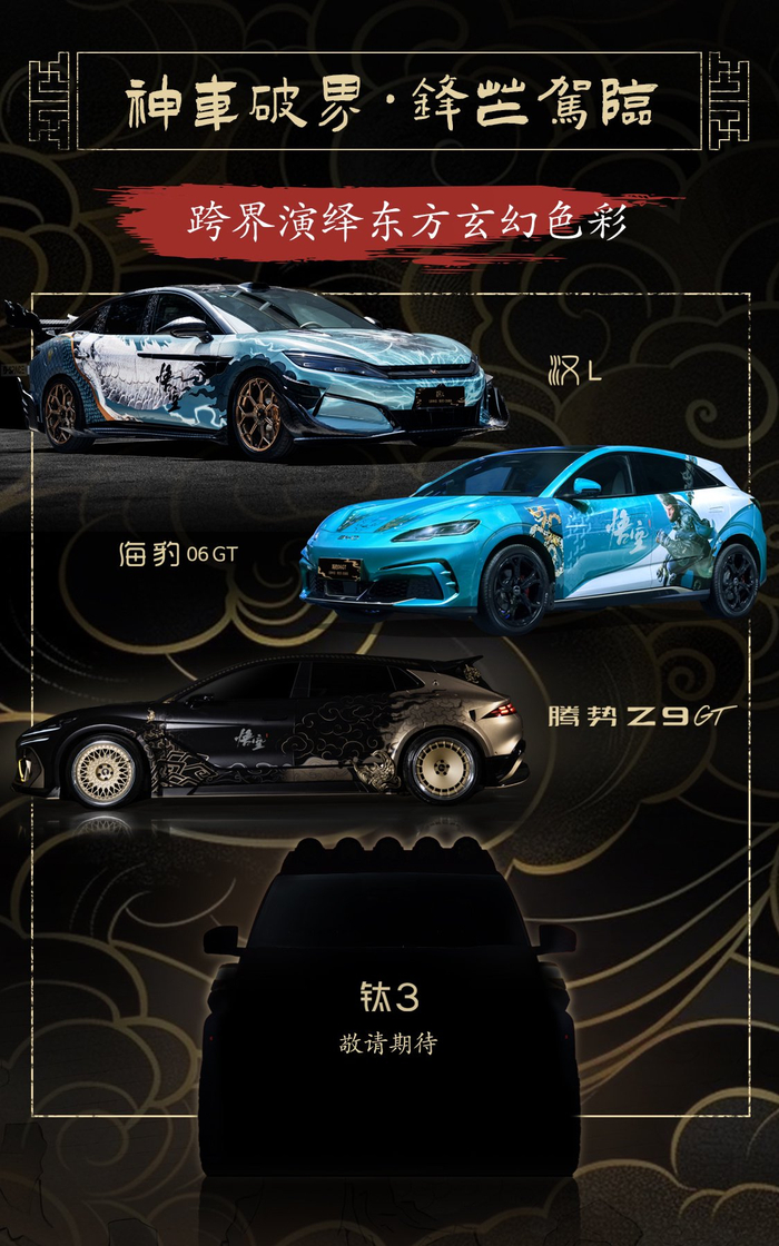 在此次 CJ 现场,比亚迪汽车将展示多款《黑神话:悟空》改装车,例如海豹 06 GT、汉 L、腾势 Z9 GT、方程豹钛 3 等等。