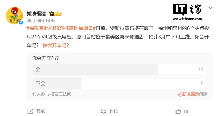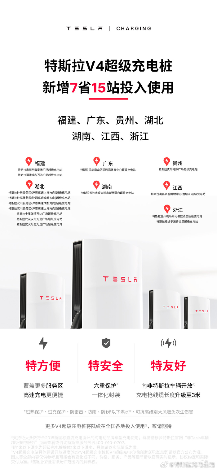 IT之家 8 月 18 日消息,特斯拉昨天宣布其福建省首批 V4 超级充电站即将上线。