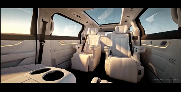 座椅布局提供两种选择,分别是 2+2+2 的 6 座版本和 2+2+2+2 的 8 座版本,同时还配备了隐藏式车门外拉手。新车实现了车内纯平地板的设计,后备厢容积达 1100L,可轻松容纳 15 个 20 寸登机箱,满足大家庭出行或商务载物需求。