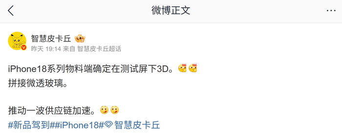 博主表示,该系列手机还在测试拼接微透玻璃,有望推动一波供应链加速。