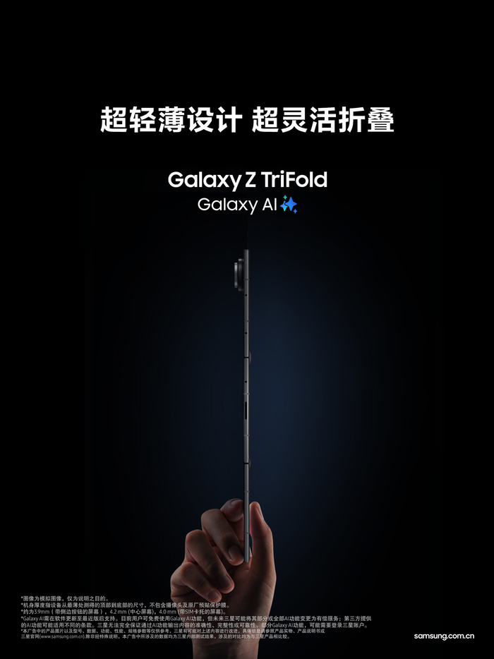 Galaxy Z TriFold 不仅仅是一部手机,它更像是一个缩影,映射出三星对于未来移动生活方式的构想:设备应当去适应人,而不是让人去适应设备。通过 3.9 毫米的极致工艺、10 英寸的无界视野以及 AI 的智慧赋能,三星正在用这款三折叠旗舰,向行业展示技术创新如何转化为有温度的用户体验。