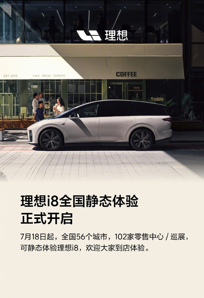 【理想 i8 六座纯电 SUV 今日到店:预计售价 35-40 万元,7 月 29 日发布】理想 i8 六座纯电 SUV 现已开启预订,预计售价 35 万元-40 万元,正式售价将于 7 月 29 日发布会公布。今日起,全国 56 个城市,102 家零售中心 / 巡展,可静态体验理想 i8。
